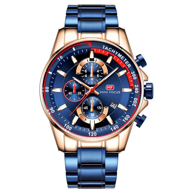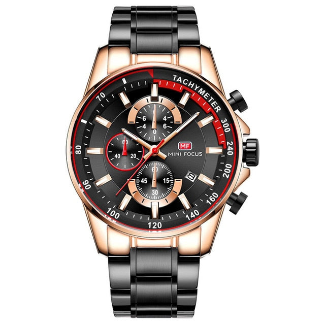 Feature: Chronograph,Auto Date,Stop Watch,Complete Calendar,Shock Resistant,Water Resistant,Luminous Hands